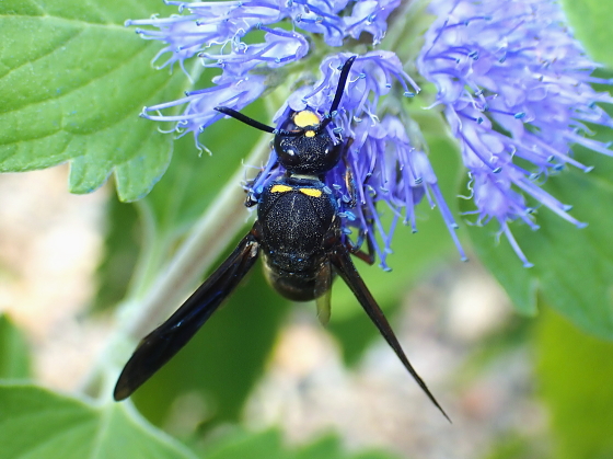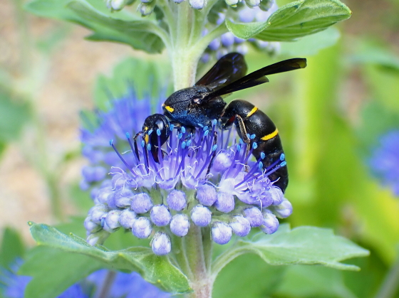 | ▲オオフタオビドロバチ対馬亜種 黄帯が消失した個体 2011.08.24 対馬市厳原町 |