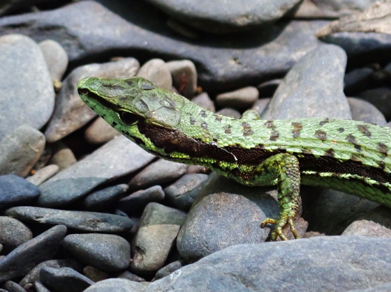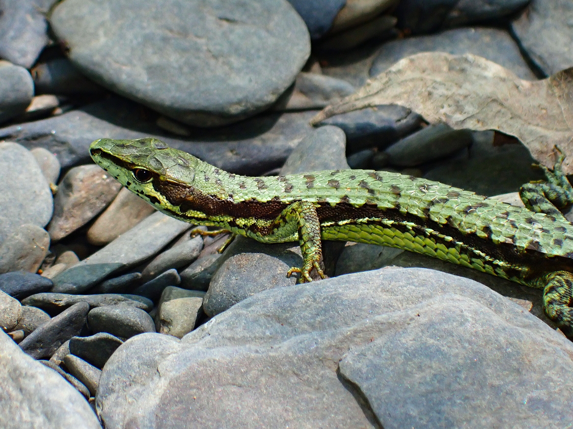 大きく立派な成体ですが、体色が今まで見たこともないような緑色を帯びています。個体変異でもなさそうなので色素異常なのかもしれません。素晴らしい個体でした。(2022/7/28) |