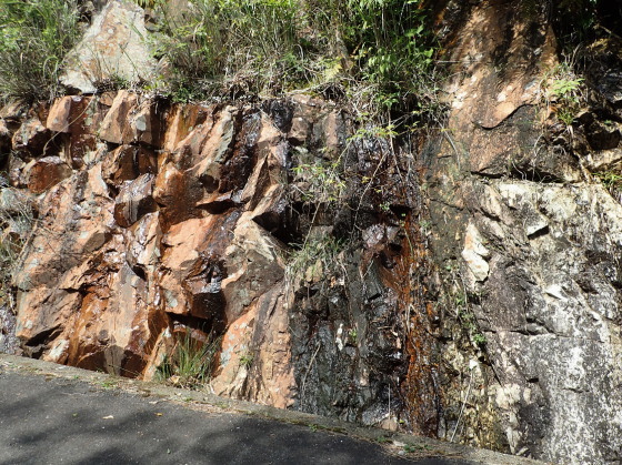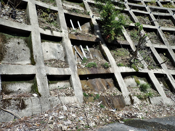 | 道路沿いのコンクリート法面染み出しに見られました。 |
