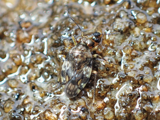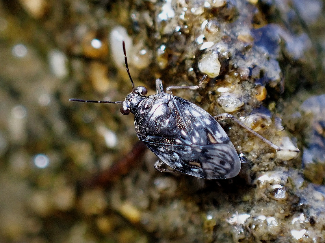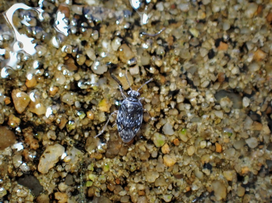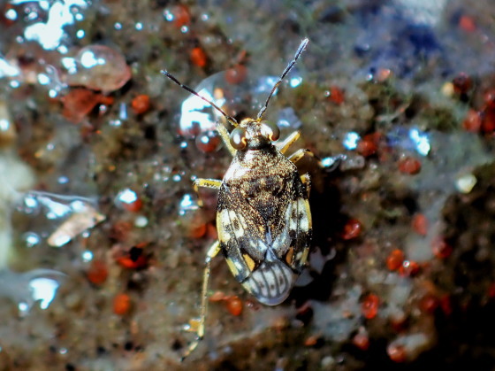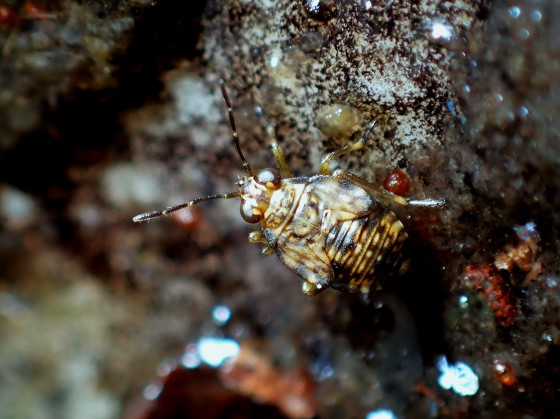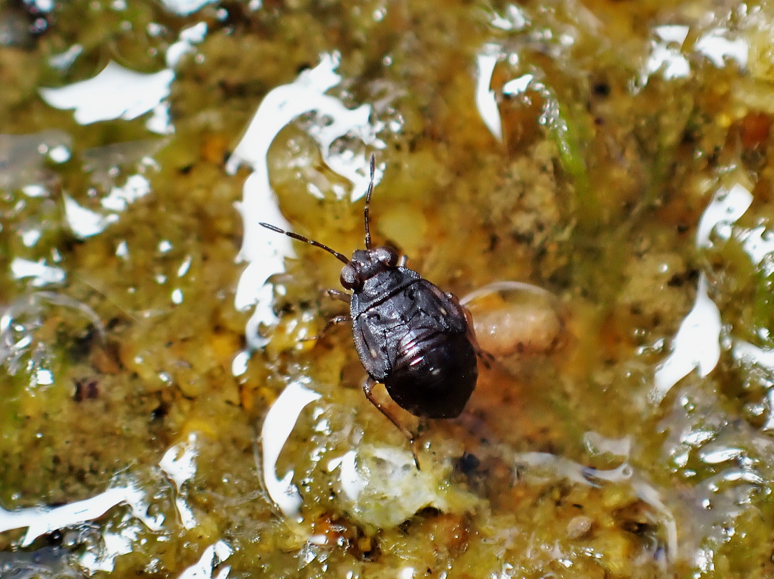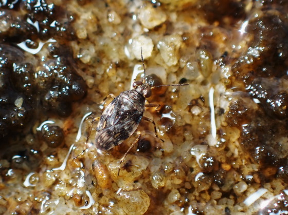 | 湿岩にはコモンシジミガムシが数頭とこのミズギワカメムシが1頭のみ…。 |