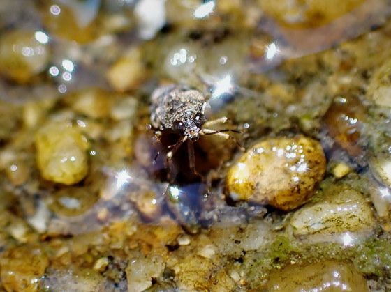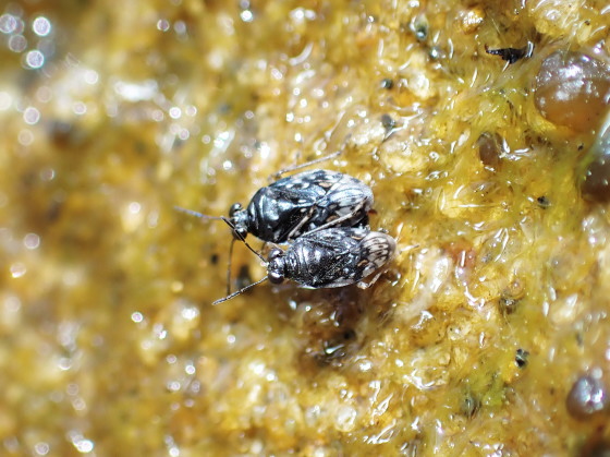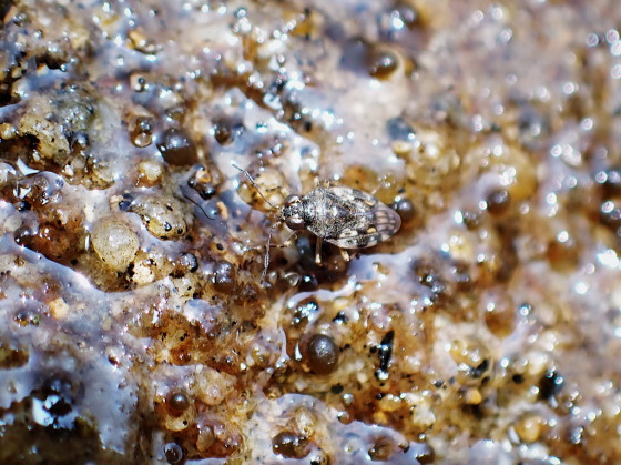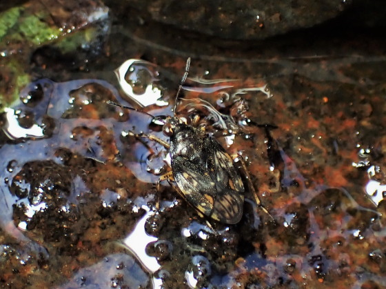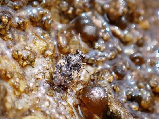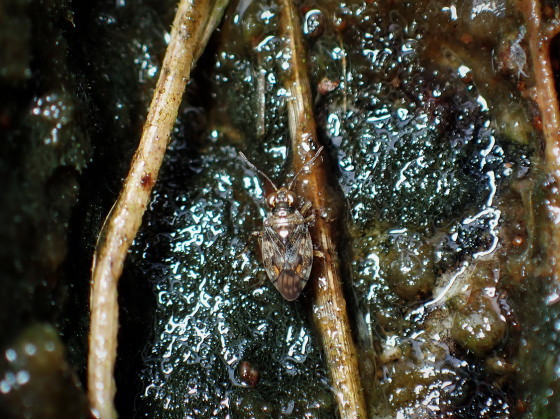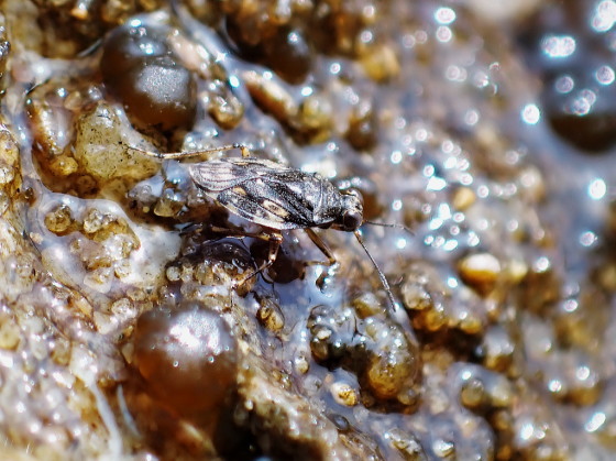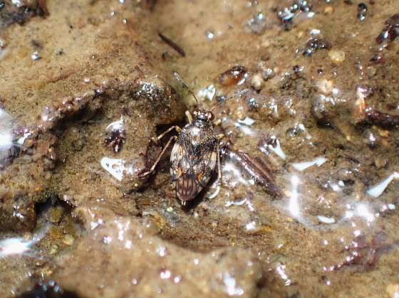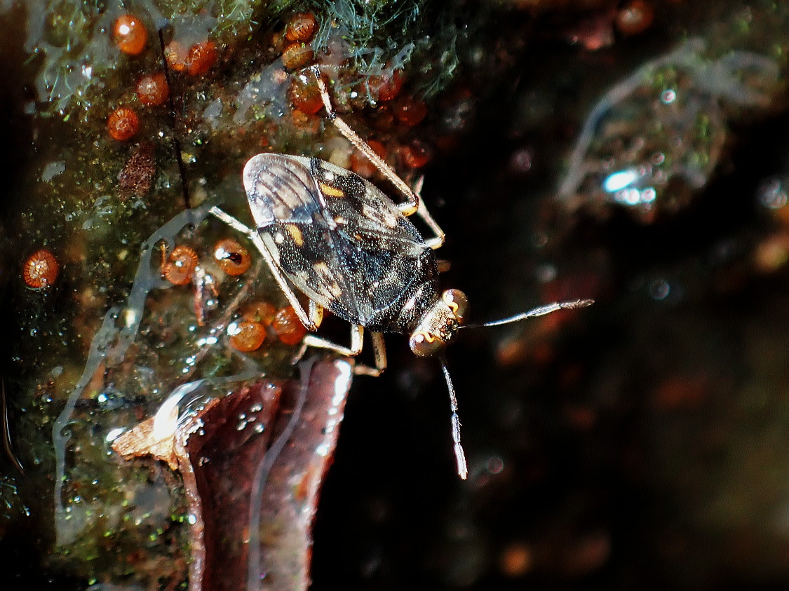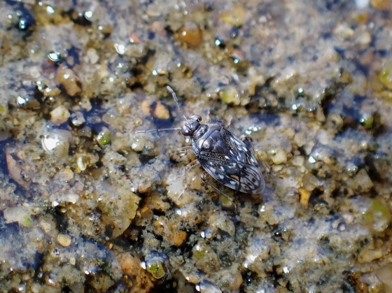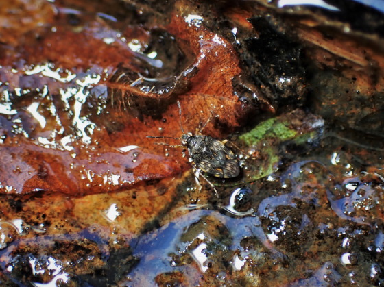 | 湿岩にはコモンシジミガムシが数頭とこのミズギワカメムシが1頭のみ…。 |