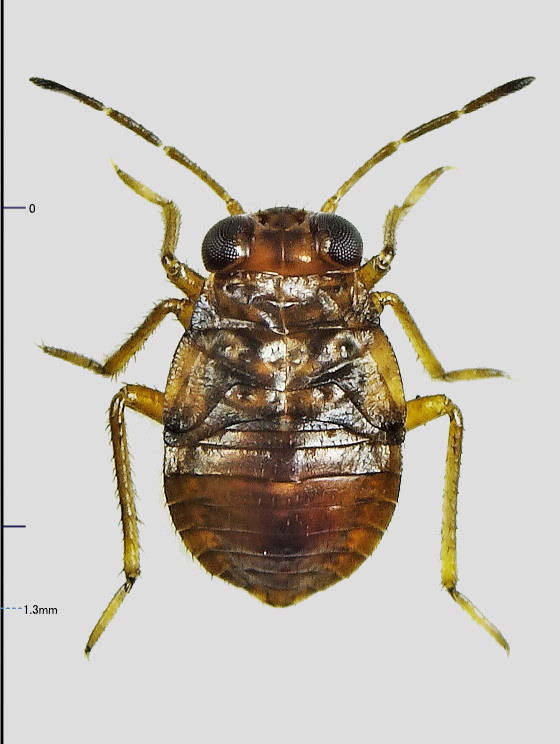 | ミズギワカメムシの一種の幼虫。 齢数は不明です。 |