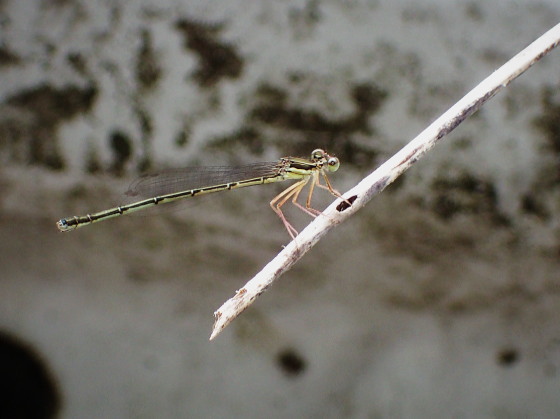 | ▲チョウセングンバイトンボ Platycnemis phyllopoda Djakonov, 1926 羽化直後と思われる♀ 2021.08.07 対馬市上県町瀬田(目保呂ダム) |