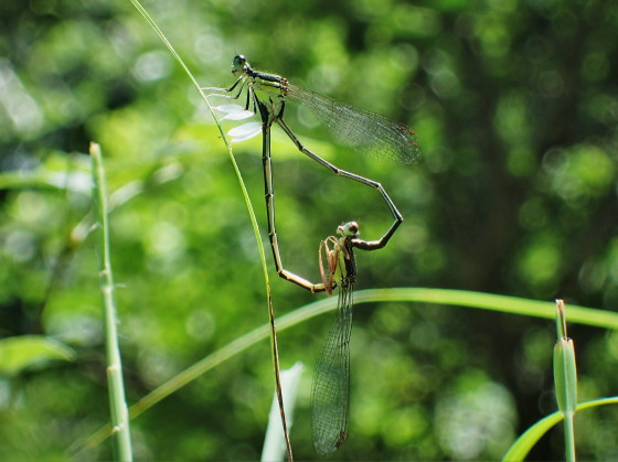 羽化後,いったん発生地から離れ,ある程度成熟した後で交尾するのかもしれません。交尾個体もなかなか敏感で撮影するのに苦労しました。 |