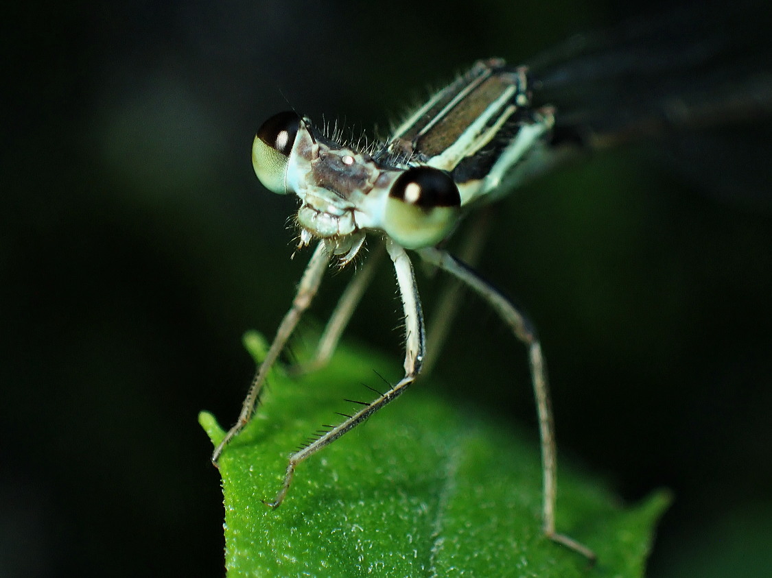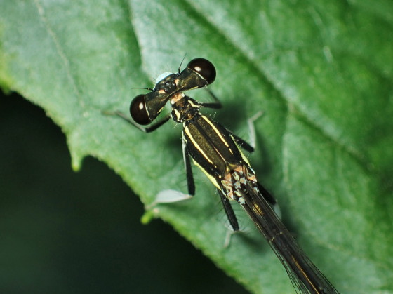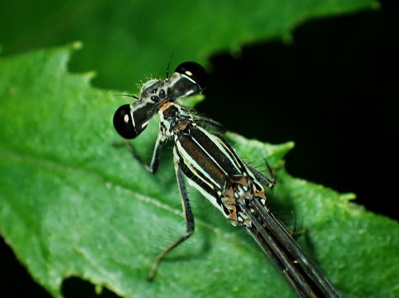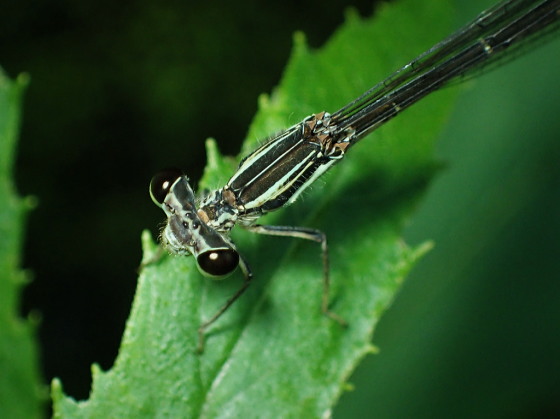 | ▲チョウセングンバイトンボの頭部背面・腹部先端 Platycnemis phyllopoda Djakonov, 1926 2021.07.27 対馬市上県町瀬田産(目保呂ダム) |
