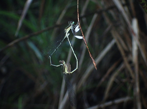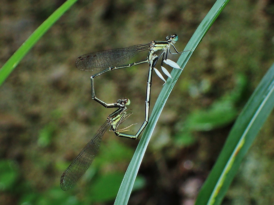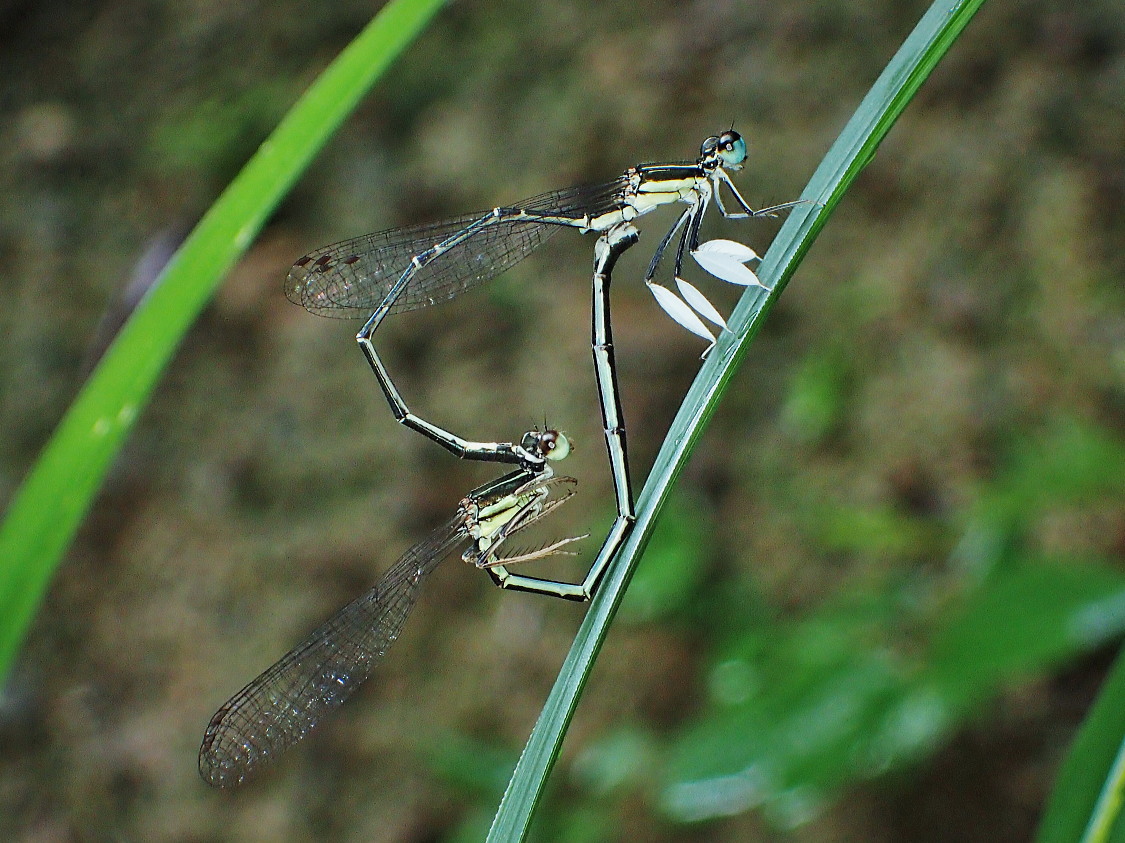 | ▲チョウセングンバイトンボの交尾 Platycnemis phyllopoda Djakonov, 1926 2021.08.28 対馬市上対馬町浜玖須(鳴川ダム) |