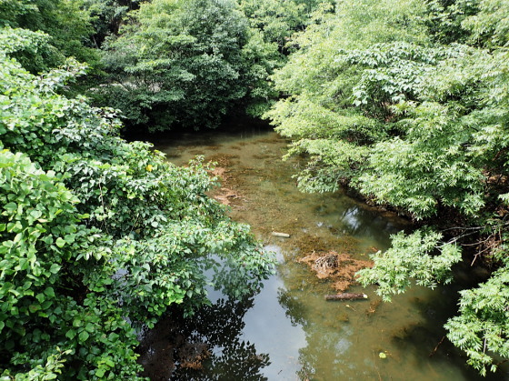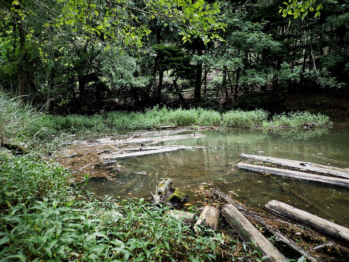 ▲発生地と思われる小渓流と貯水域の狭間 2021.08.28 |