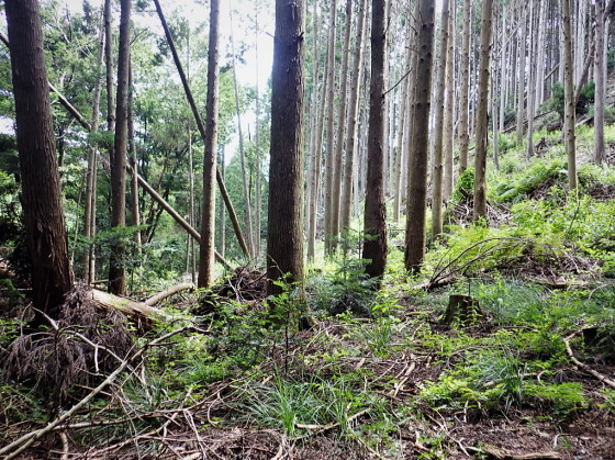 ▲成虫が見られた唐舟志の杉林 2021.09.04 |