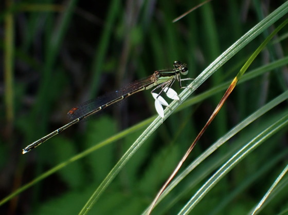 | ▲チョウセングンバイトンボの産卵 Platycnemis phyllopoda Djakonov, 1926 2021.08.04 対馬市上県町瀬田(目保呂ダム) |