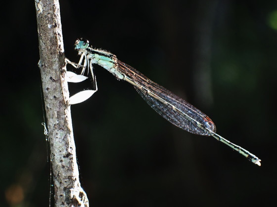 ▲脚や頭部背面が赤味を帯びるテネラルな♀ 2021.07.26 対馬市上県町瀬田(目保呂ダム) |